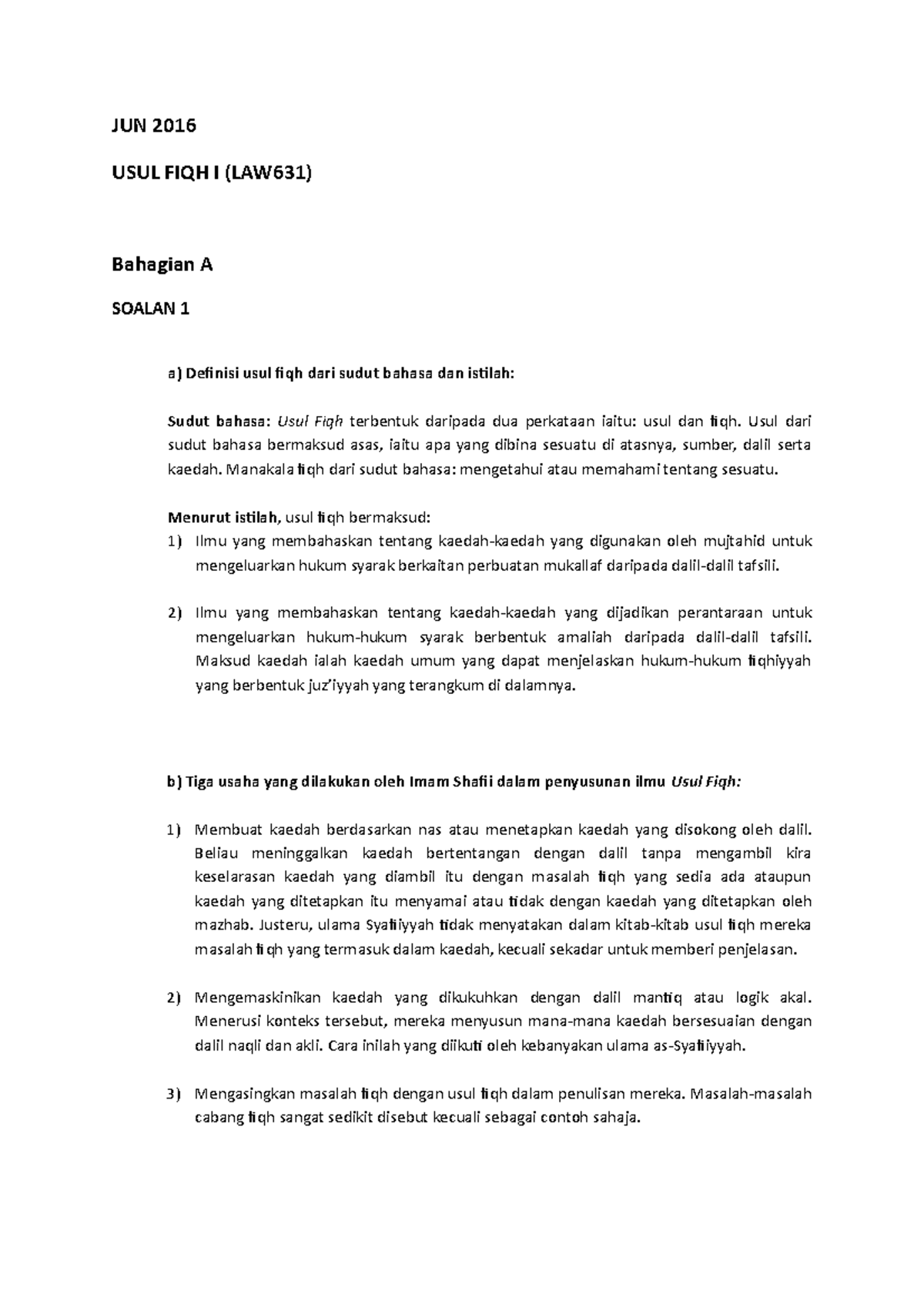 Usul Fiqh I Exam Jun 2016 Jun 2016 Usul Fiqh I Law631 Bahagian A Soalan 1 A Definisi Usul Fiqh Studocu www.studocu.com